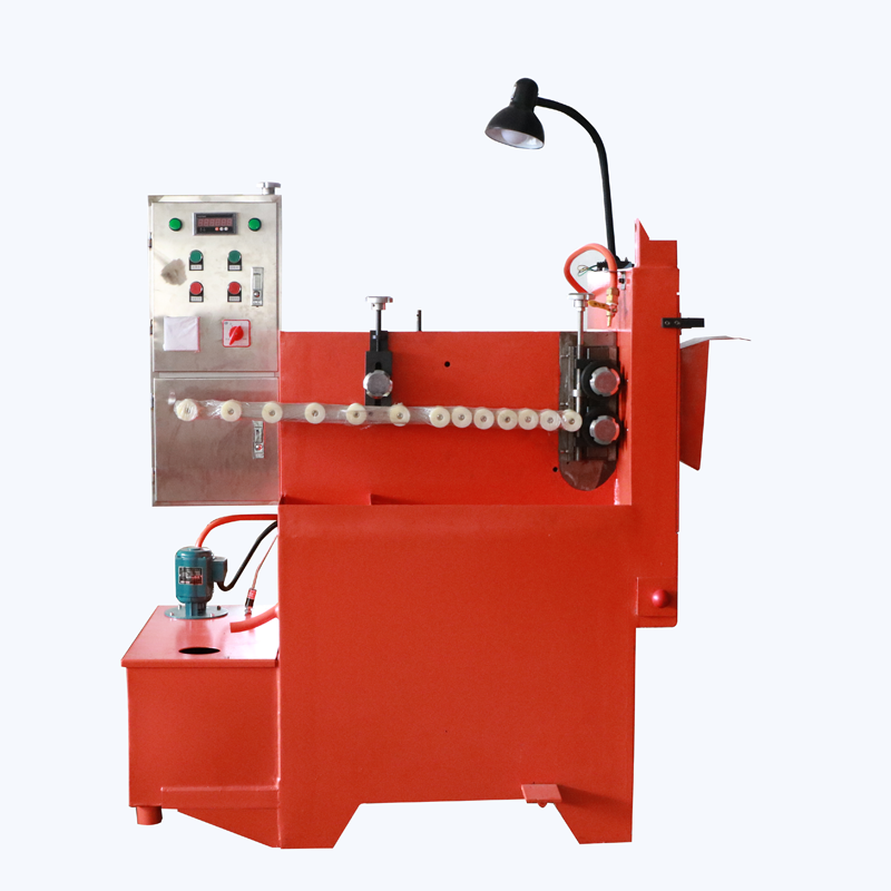自動(dòng)飛刀切片機(jī)用以生產(chǎn)不飽和聚脂樹(shù)棒子毛胚。在堅(jiān)固的機(jī)身上裝有一個(gè)特大飛輪,用以切落較軟的棒材(最高為硬度計(jì)算40度)??蔁崴詣?dòng)循環(huán)使用。